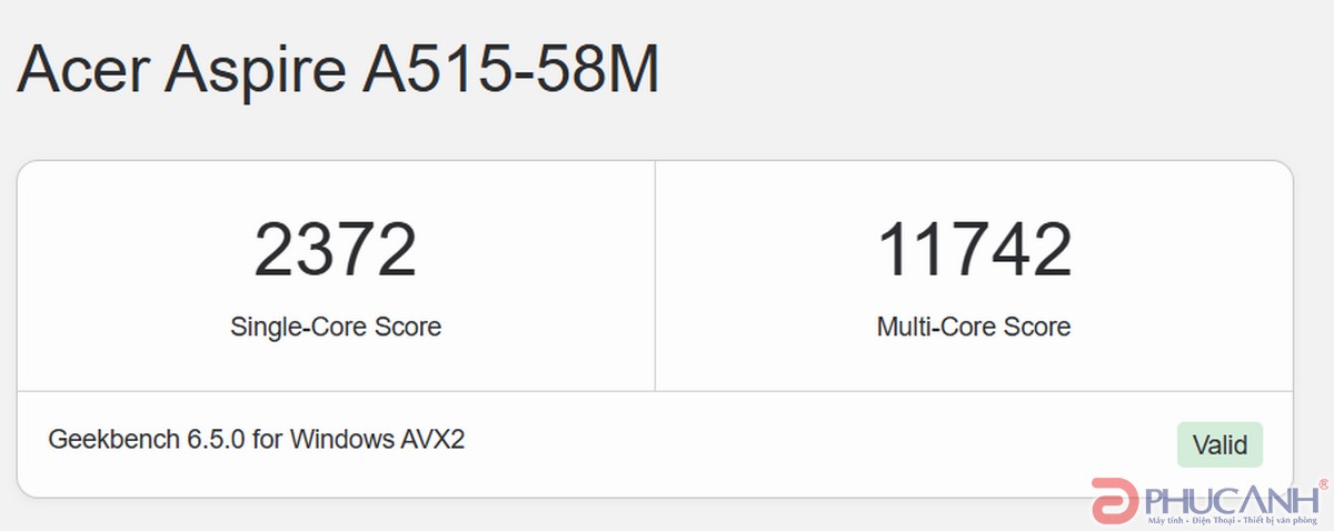 Ổ cứng trên Acer Aspire A515 58M 79R7 cũng cho tốc độ đọc ghi tốt giúp khả năng vận hành khi mở ứng dụng được nhanh chóng với kết quả test khá tốt.
